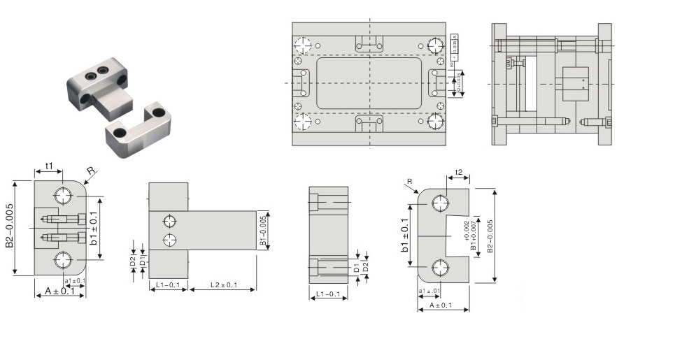 | B1 | L1 | L2 | A | B2 | :D1 | D2 | b1 | t1 | t2 | R | |