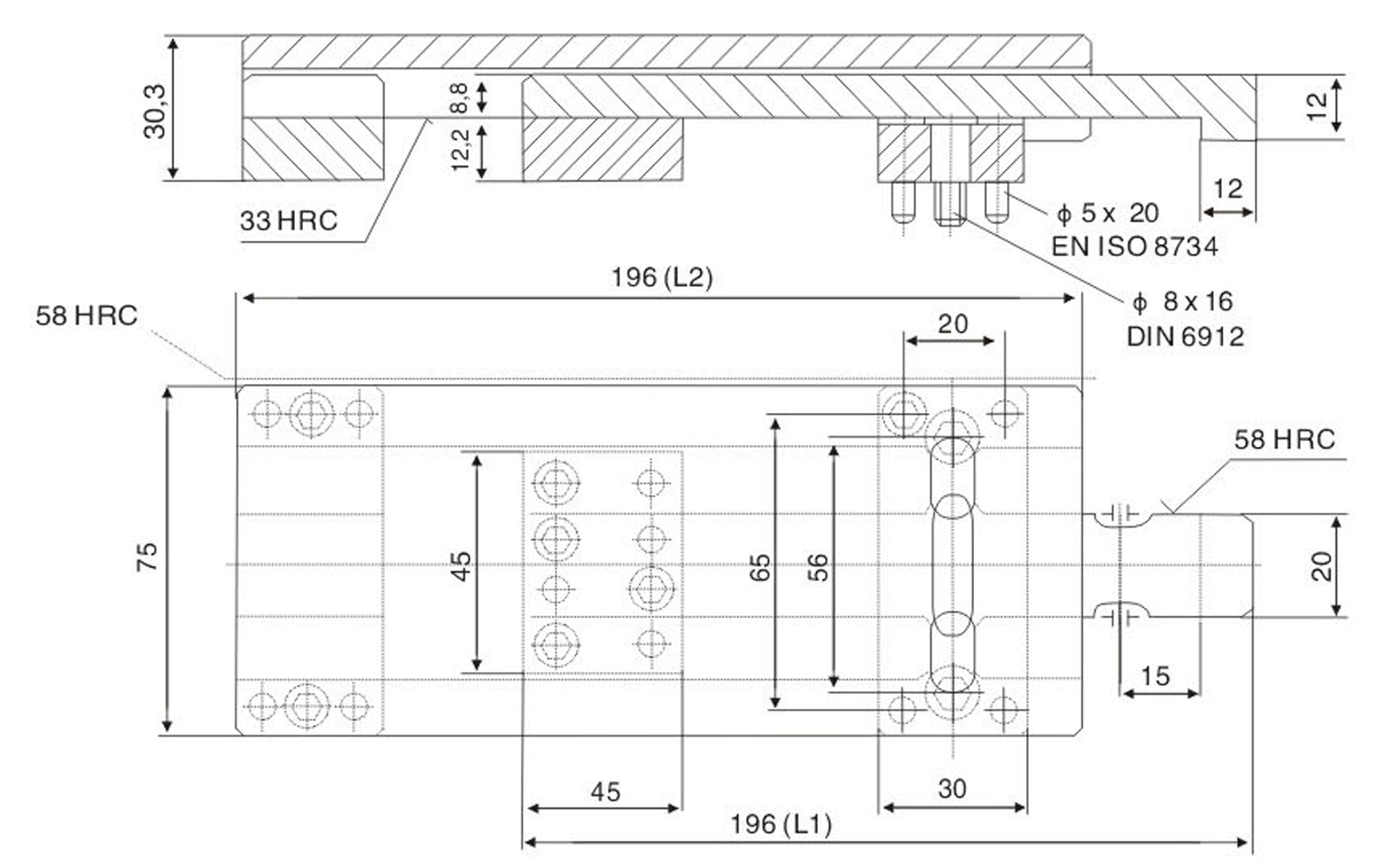 ※ Precautions: lt is required to calculate the same stroke for symmetrical installation during die processing. Otherwise, it will cause unbalance force of single set of modelocking buckle and breakage of component.
