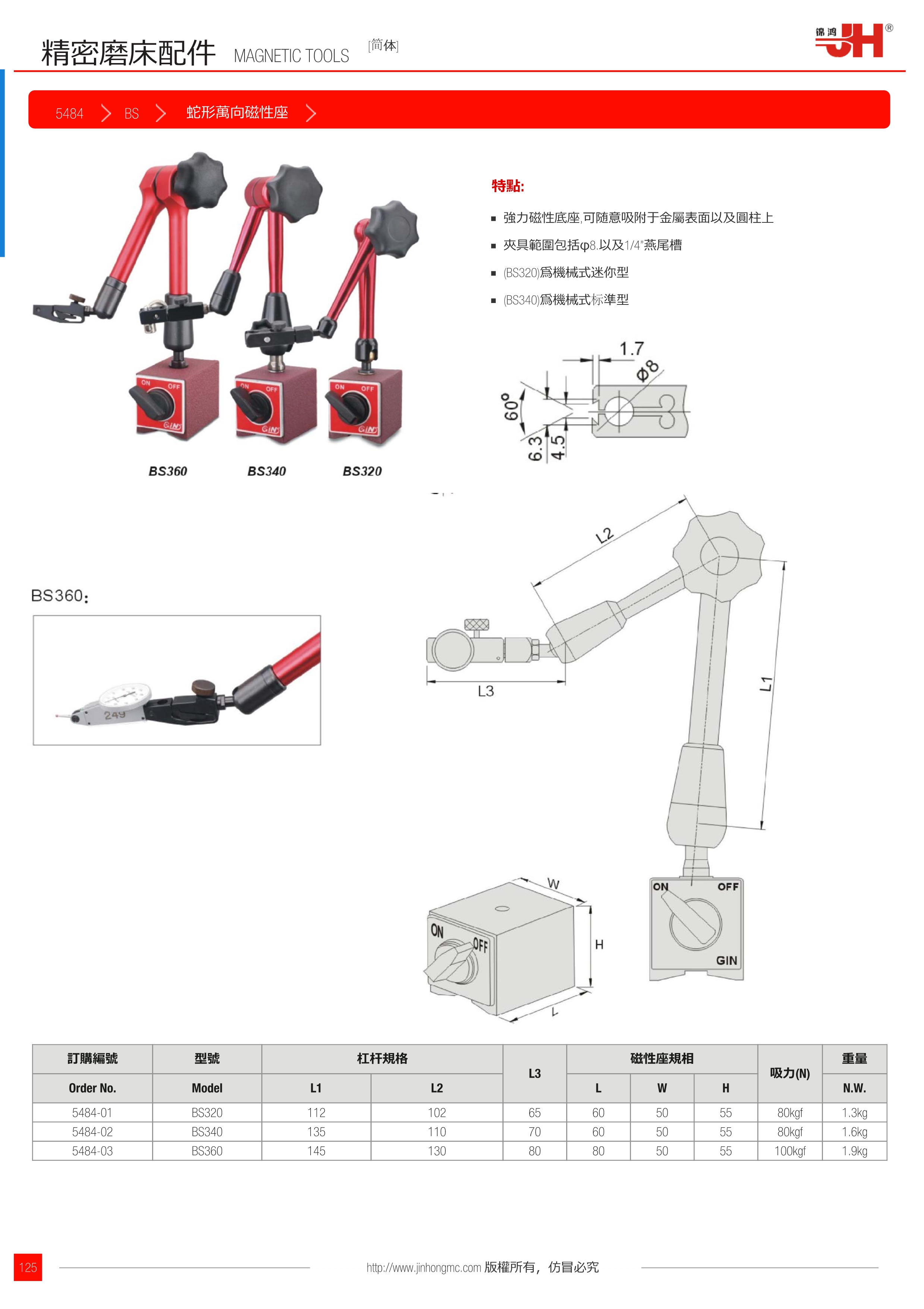 訂購編號型號杠桿規格L3磁性座規相吸力(N)重量