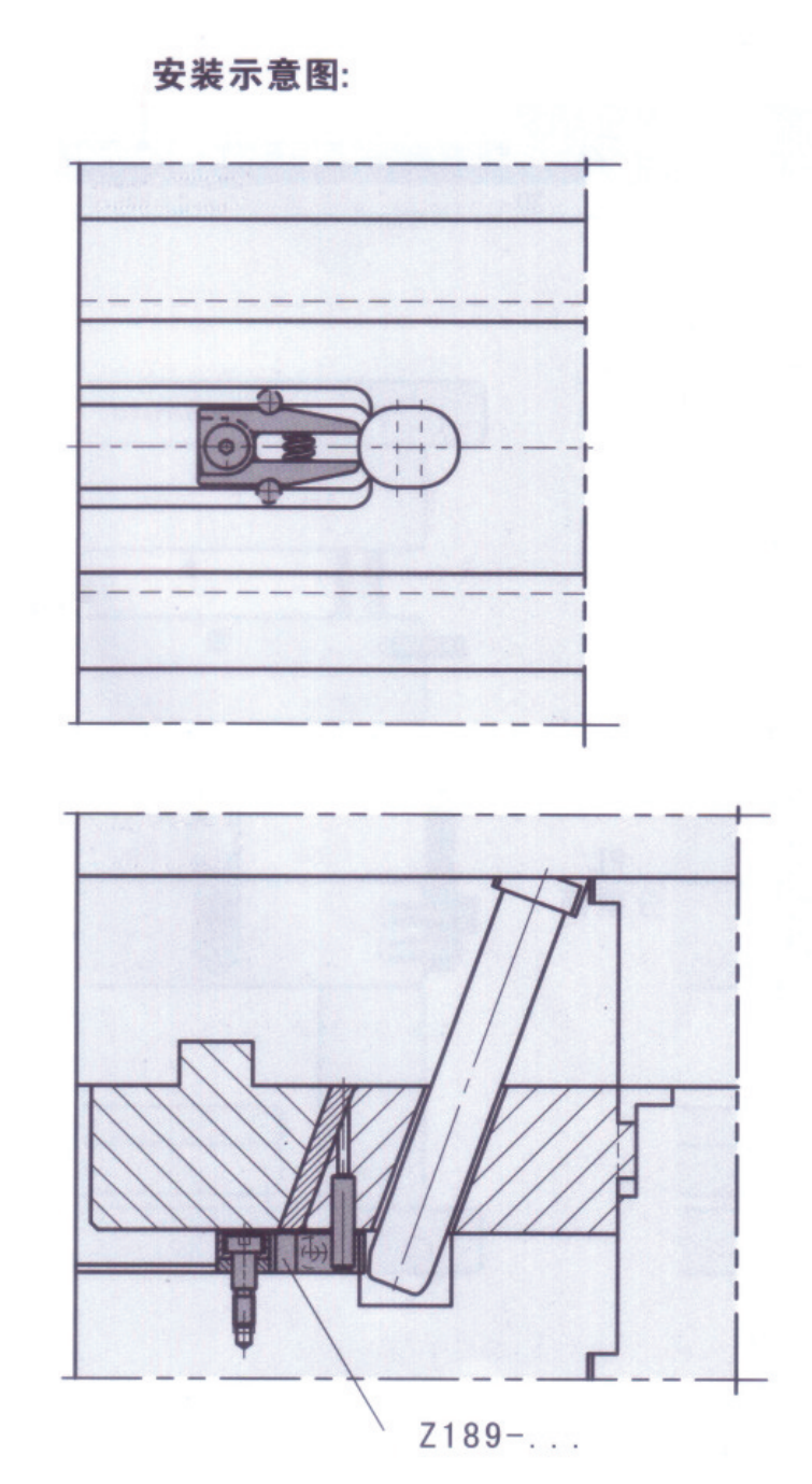 • 銷釘一般安裝在滑塊上,主體通過限位螺絲固定在 模板上,需精確計算好滑塊行程.