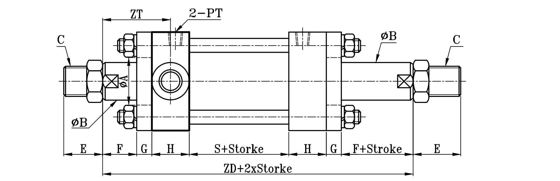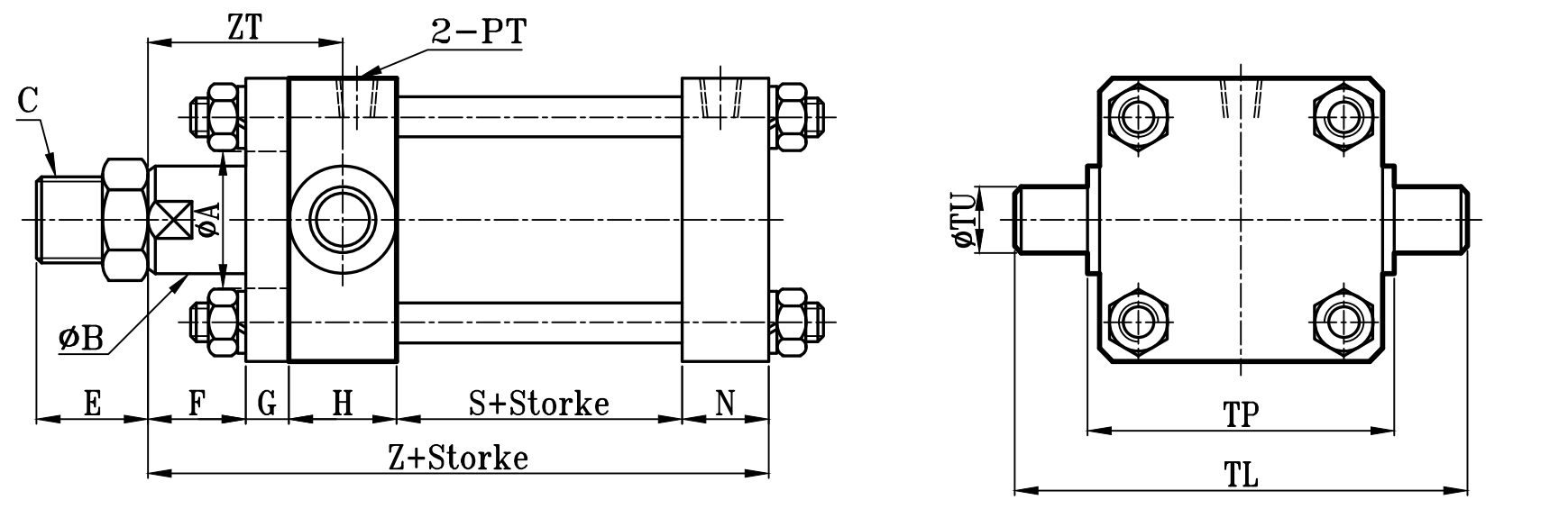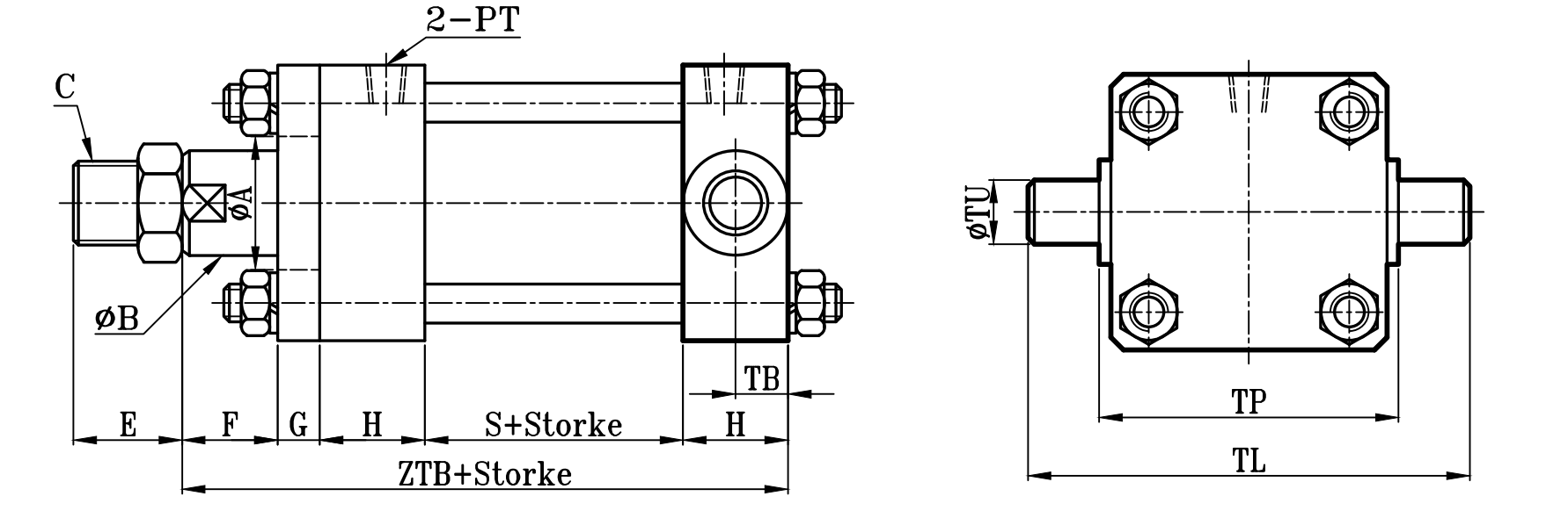 方型重型油壓缸TA板尺寸圖 14Mpa Hydraulic Cylinders TA Dimensional Features