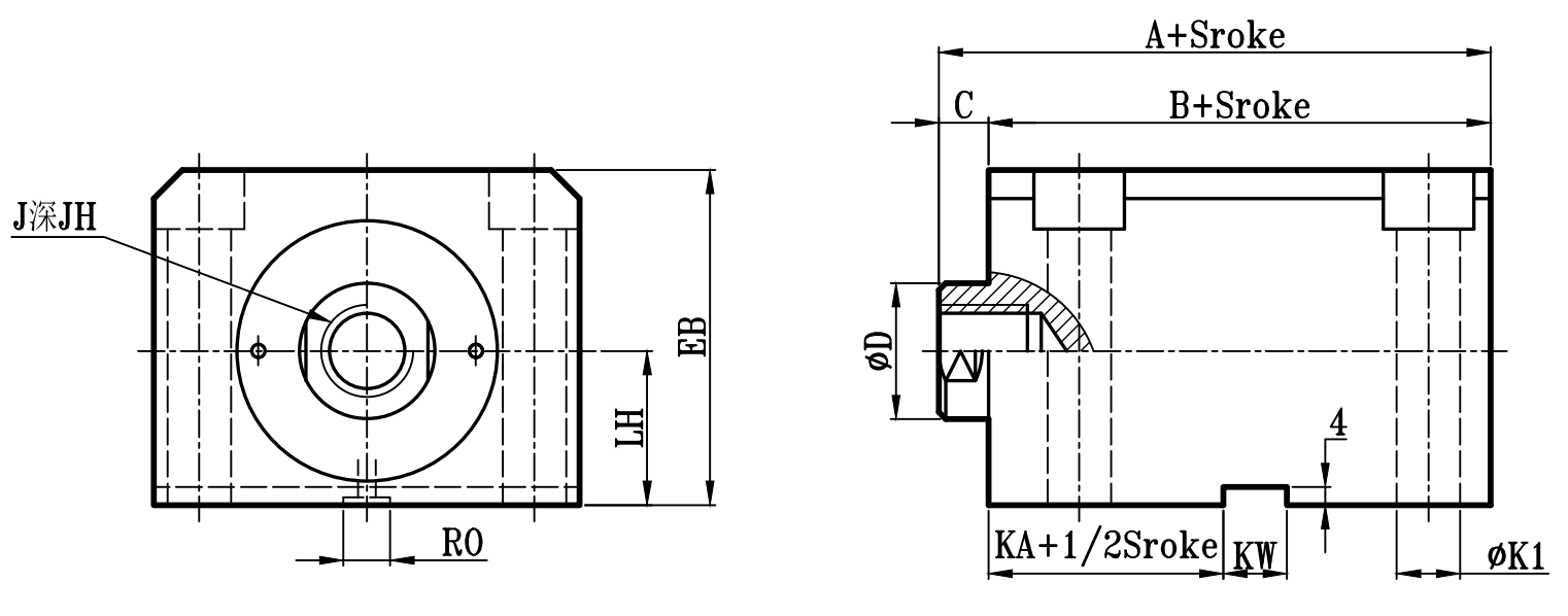 | 缸徑 BORE | A | B | C | ΦD | E | F | EA | FA | EB | LH | Q | FB | ΦK | ΦK1 | KA | KW | ΦM | H | S | RO | Y | X | J | JH | O | OL | W | ΦV |