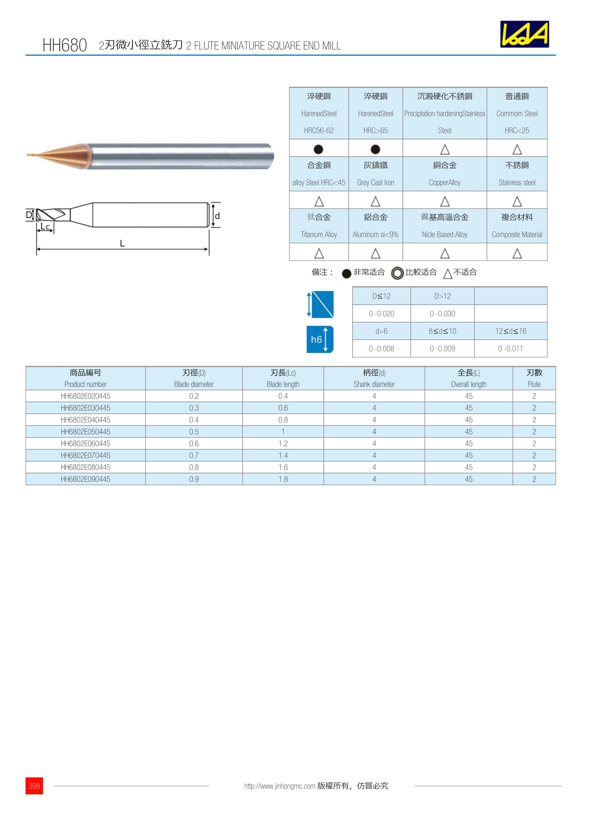 訂購:hh680-1 2刃微小徑立銑刀